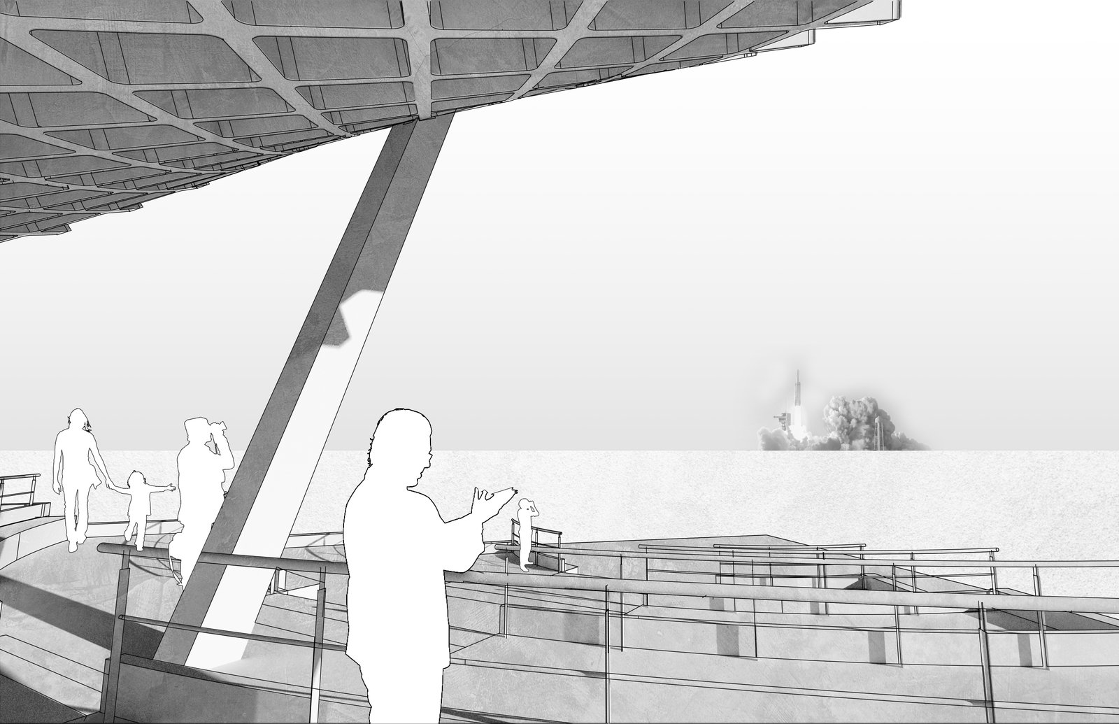 The New Hope Pavilion in Asteroid City is built as a beacon of hope for humanity—A pavilion where people can be sheltered from the scorching sun and watch as the early rockets creating the first modules of the Gallastro Project launch into space. In a world where most have lost hope, the New Hope Pavilion is there to symbolize the human spirit’s nature to persevere through hard times.